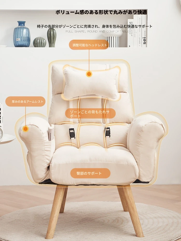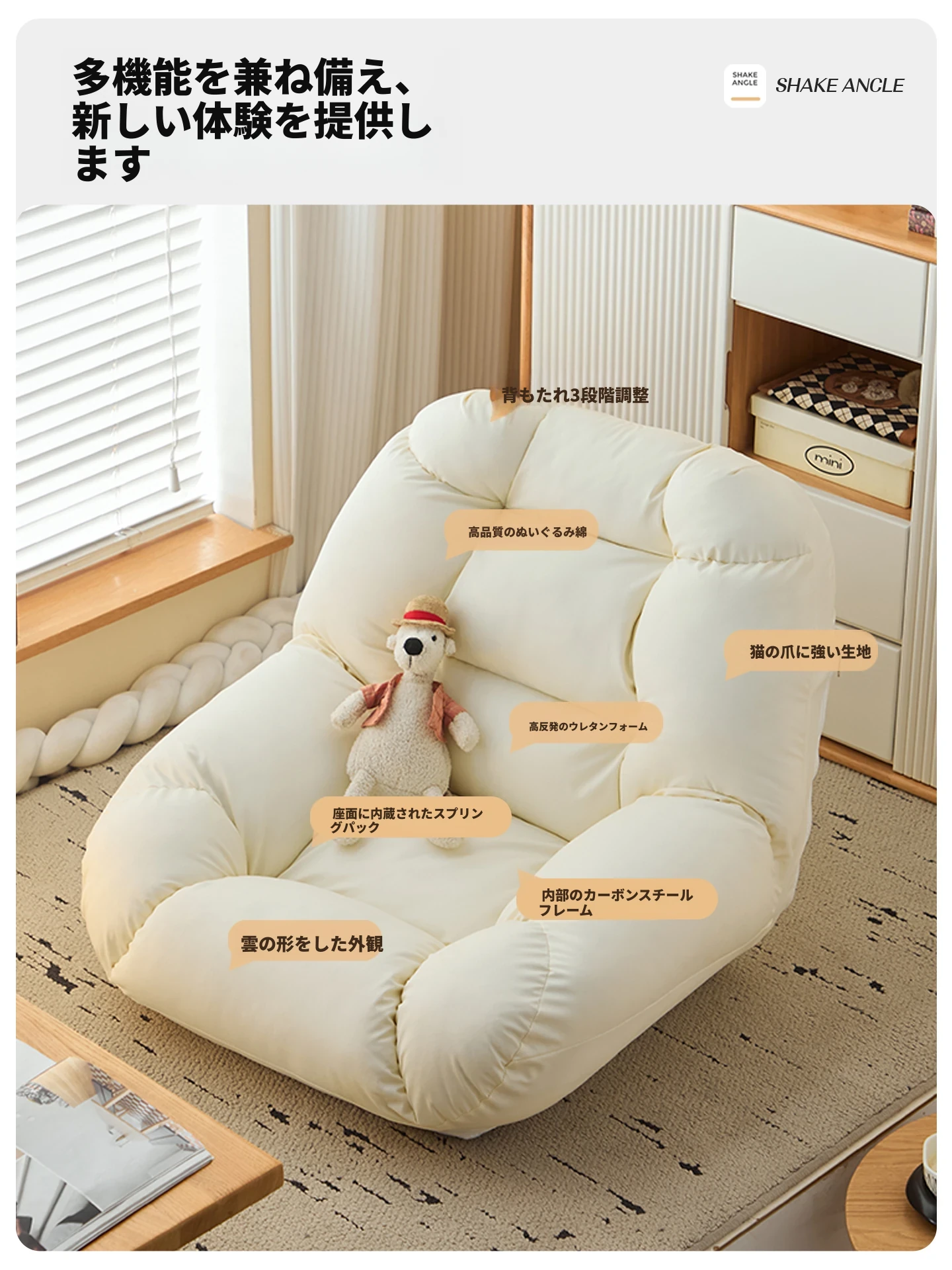 クリーム風のリラックスソファー、寝転んでくつろげる小悪魔ソファー!寝室やバルコニーにもぴったりの家庭用リクライニングチェア。日本のスタイルで一人用、心地よいひとときをお楽しみください。