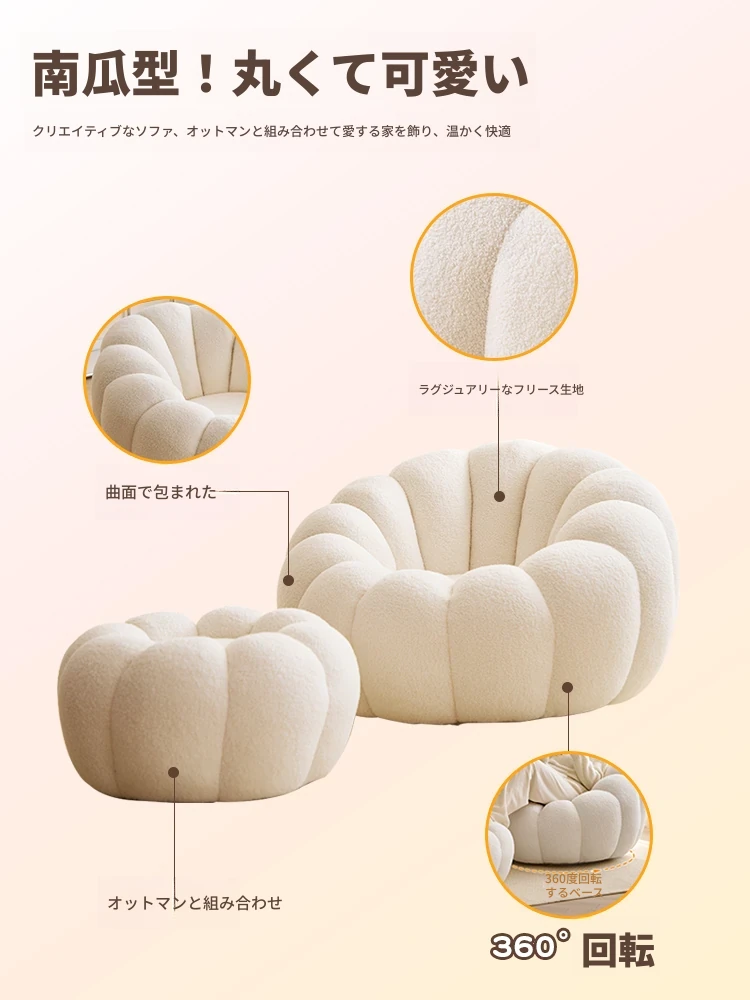 快適な家庭用リラックスソファ|寝ても座ってもOK!南瓜型デザインの回転式シングルソファ|バルコニーや寝室に最適なリラックスチェア!