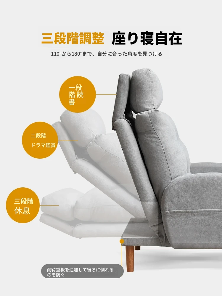 リラックスできる折りたたみソファチェア - 寝る・座るを自由自在に!タタミスタイルの一人用チェア、リビングや寝室、バルコニーでのくつろぎに最適。快適なひとときを提供します!