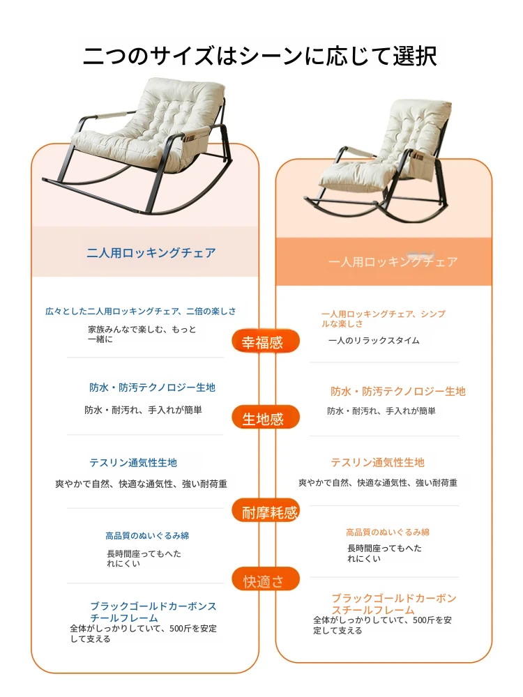 リラックスできるロッキングチェア!大人向けの快適なソファ&バルコニー用の Lazy ソファ。居心地の良いダブルロッキングチェアで、心地よいひとときをお楽しみください。