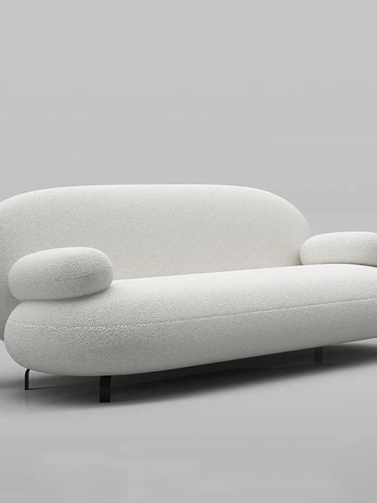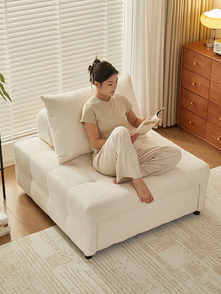 フレンチクリーム風小型パフ生地ソファ 2025年新作!高級感あふれるモダンミニマリズムデザインで、リビングをスタイリッシュに演出。限られた空間にもぴったりなコンパクトサイズ!