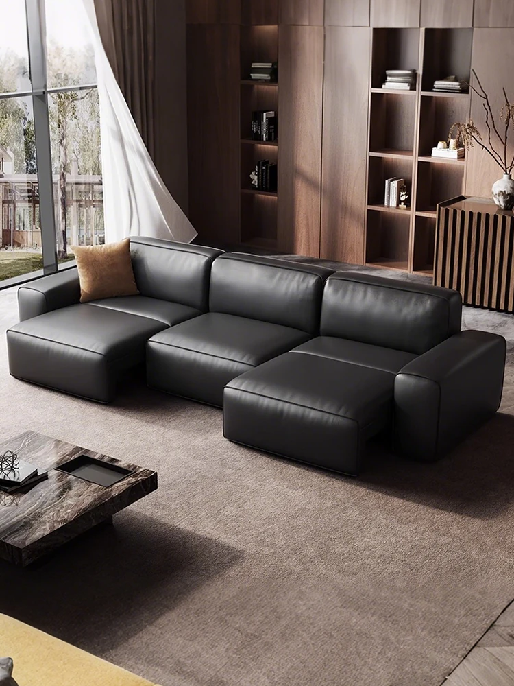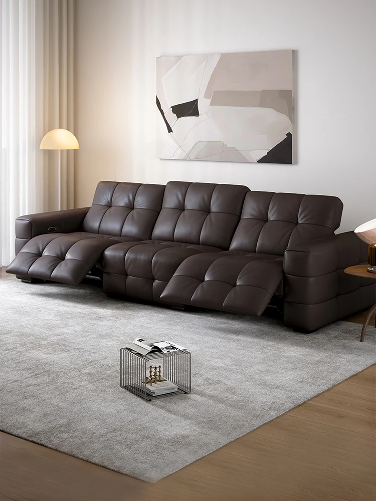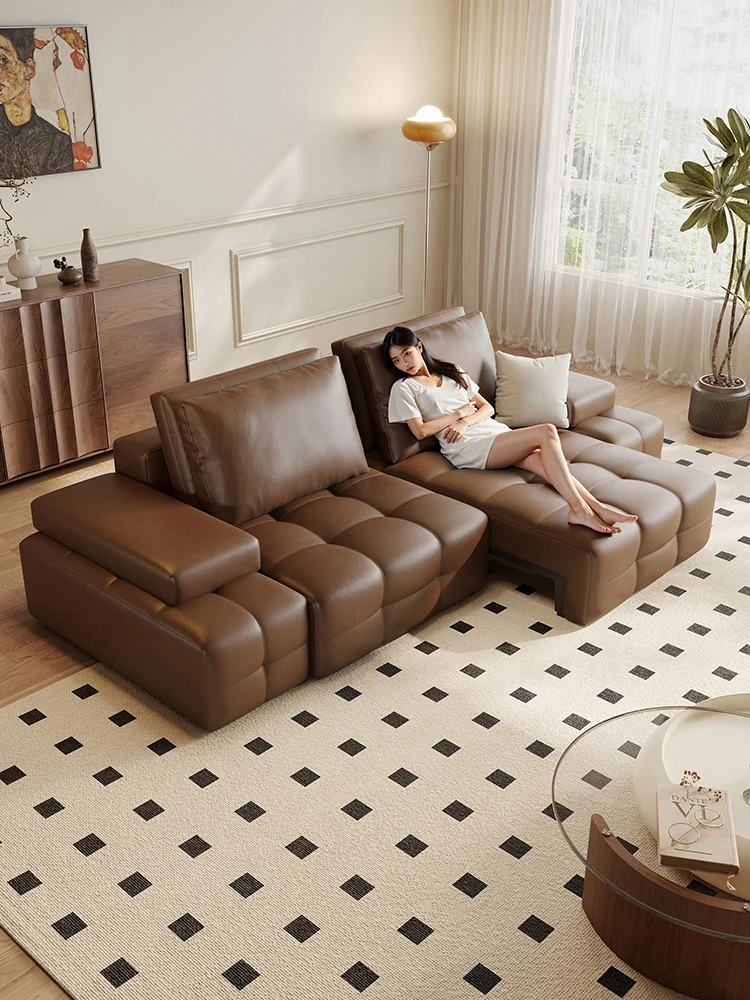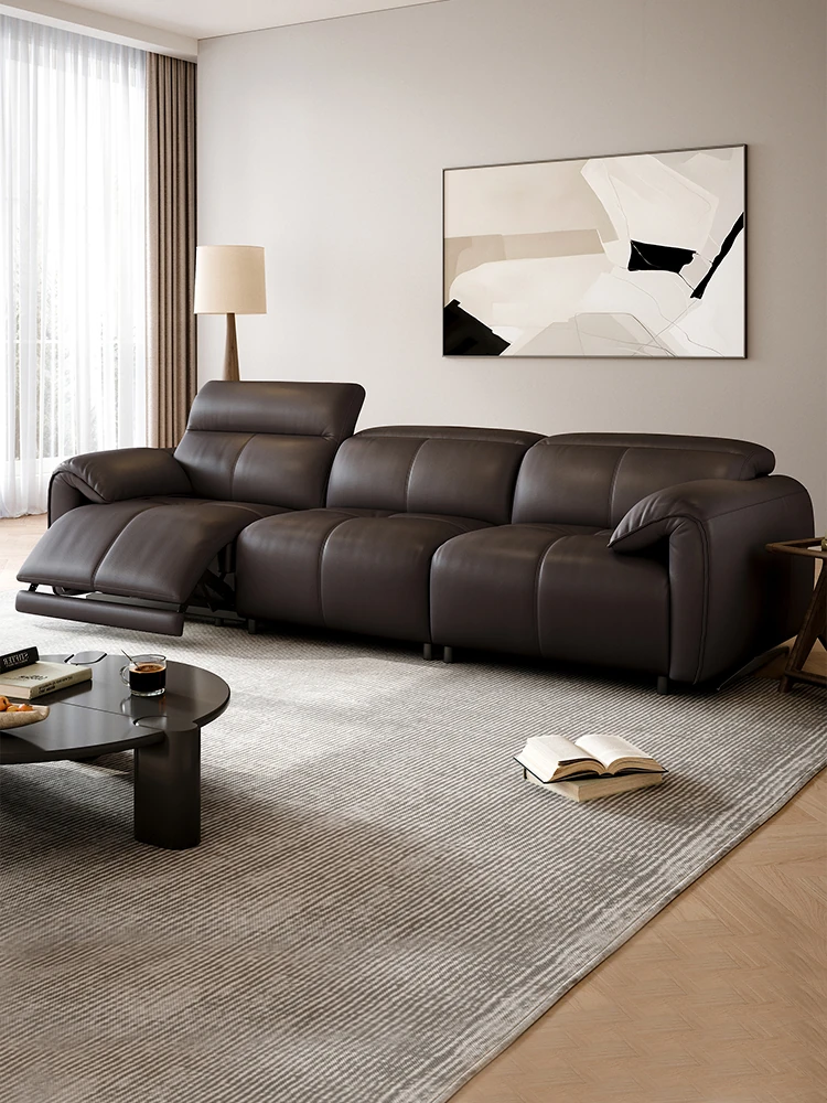イタリアンミニマリズム電動大黒牛本革ソファ、リビングに最適!壁に寄せられる直排デザイン、調整可能な自動伸縮機能付き、快適なソファベッドとしても活躍。あなたの空間をスタイリッシュに演出します!