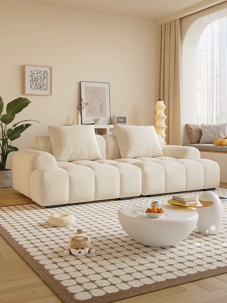 フレンチクリーム風2025年新作マシュマロシュークリームソファ、小型リビング向け雲のような布製ソファで、優雅なデザインと快適さを兼ね備えています。お部屋をおしゃれに彩る、理想の一品です!