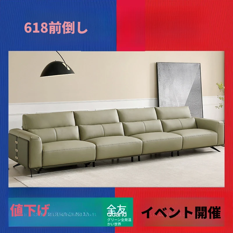 全友家具 20276 モダンシンプル インポート一級牛革 薄緑色 ストレート機能付きレザーソファ – おしゃれで快適、リビングにぴったりの選択!