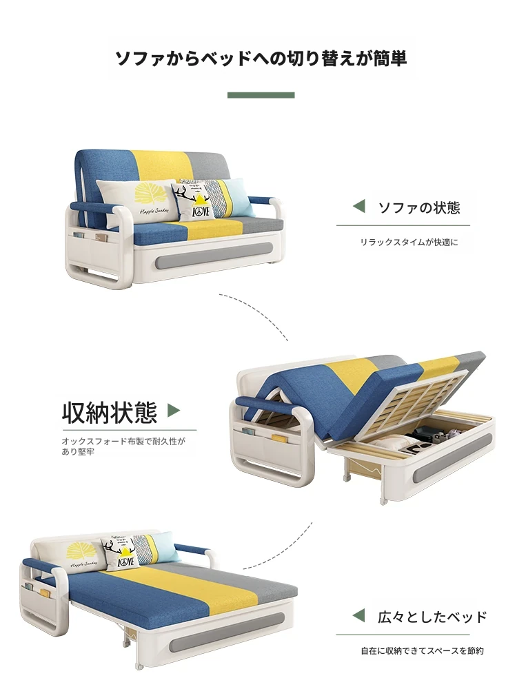 折りたたみ式パフソファベッド|1台2役の多機能ソファ|狭い部屋にぴったりなコンパクトデザイン|引き出し式で簡単にベッドに変身!