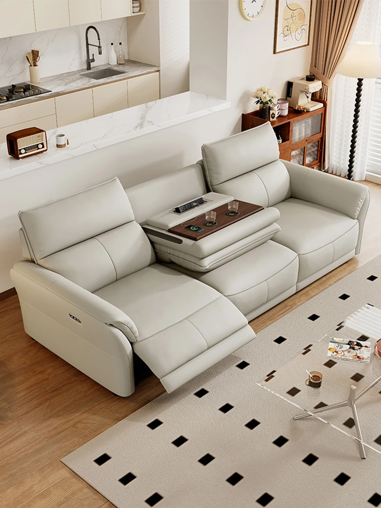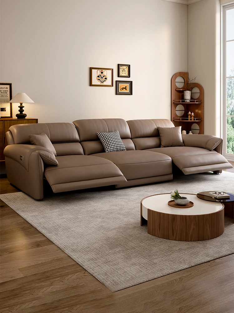 思享派のファーストクラス宇宙電動ソファ - 本革製3人掛け、リビングルームやホームシアターに最適!背もたれを壁に寄せられる機能性ソファで、贅沢なくつろぎをお楽しみください。