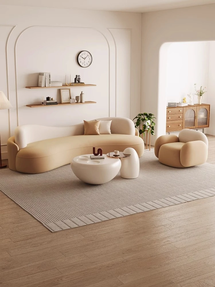 【香港送料無料】フレンチクリーム雲のようなソファ、マシュマロファブリックで作られたリビングルーム向け小型簡易デザイン!おしゃれで快適な空間を演出します。