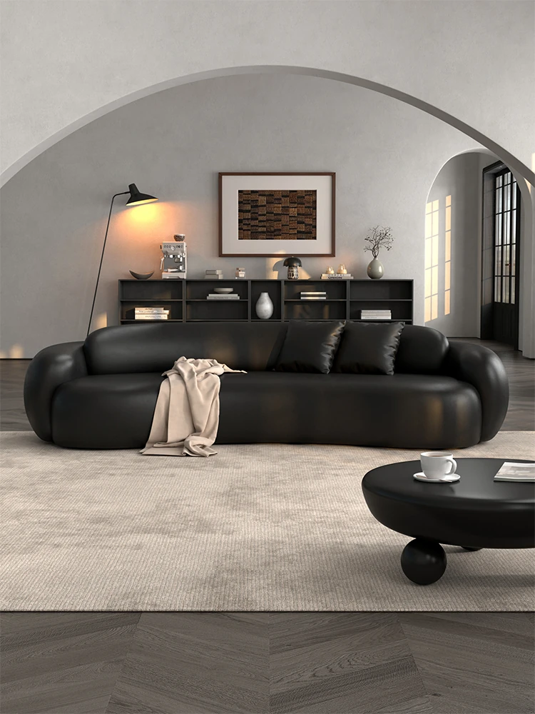 イタリアンミニマリストソファ - ラグジュアリー感溢れる黒色デザイン、リビングルーム・ホテル・アパレルショップに最適!接客エリアやオフィスの会議スペースにもぴったり。洗練されたスタイルで、どんな空間も格上げ!