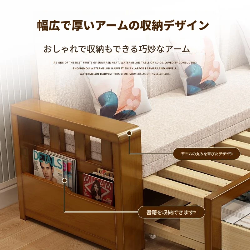 【香港送料無料】新中式多機能ソファベッド!収納付き・伸縮可能・折りたたみ式で小型スペースにも最適!高品質な布地と天然木材を使用したおしゃれなデザインで、快適な生活空間を実現します。