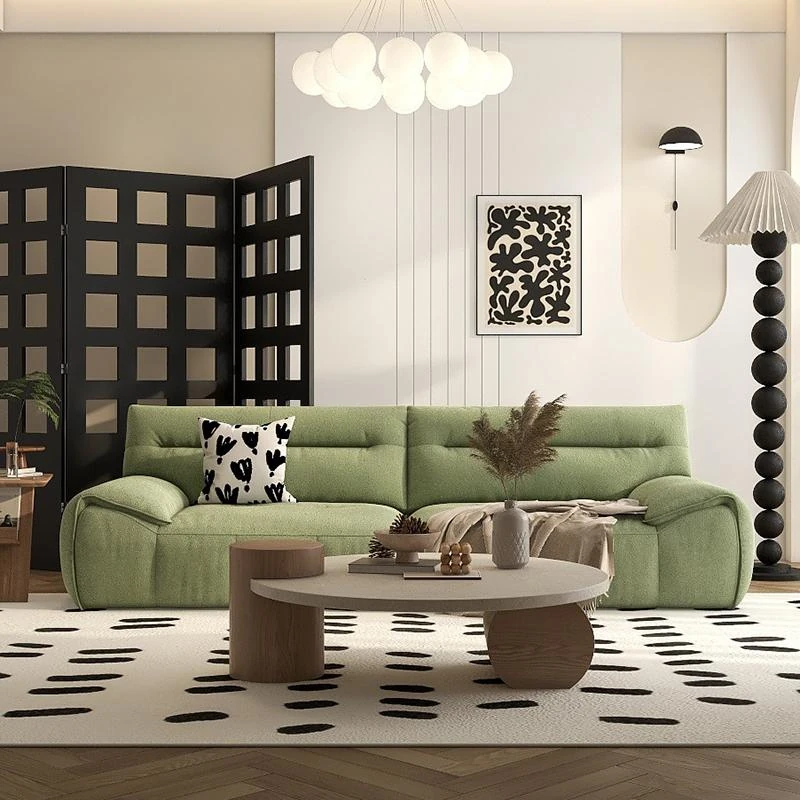北欧風2025新作テクノロジー布製ソファー!小型住宅に最適なリビング向け、軽やかなラグジュアリー感が漂う直列4人掛け。心地よい居心地とスタイリッシュなデザインで、あなたの空間を特別なものに!
