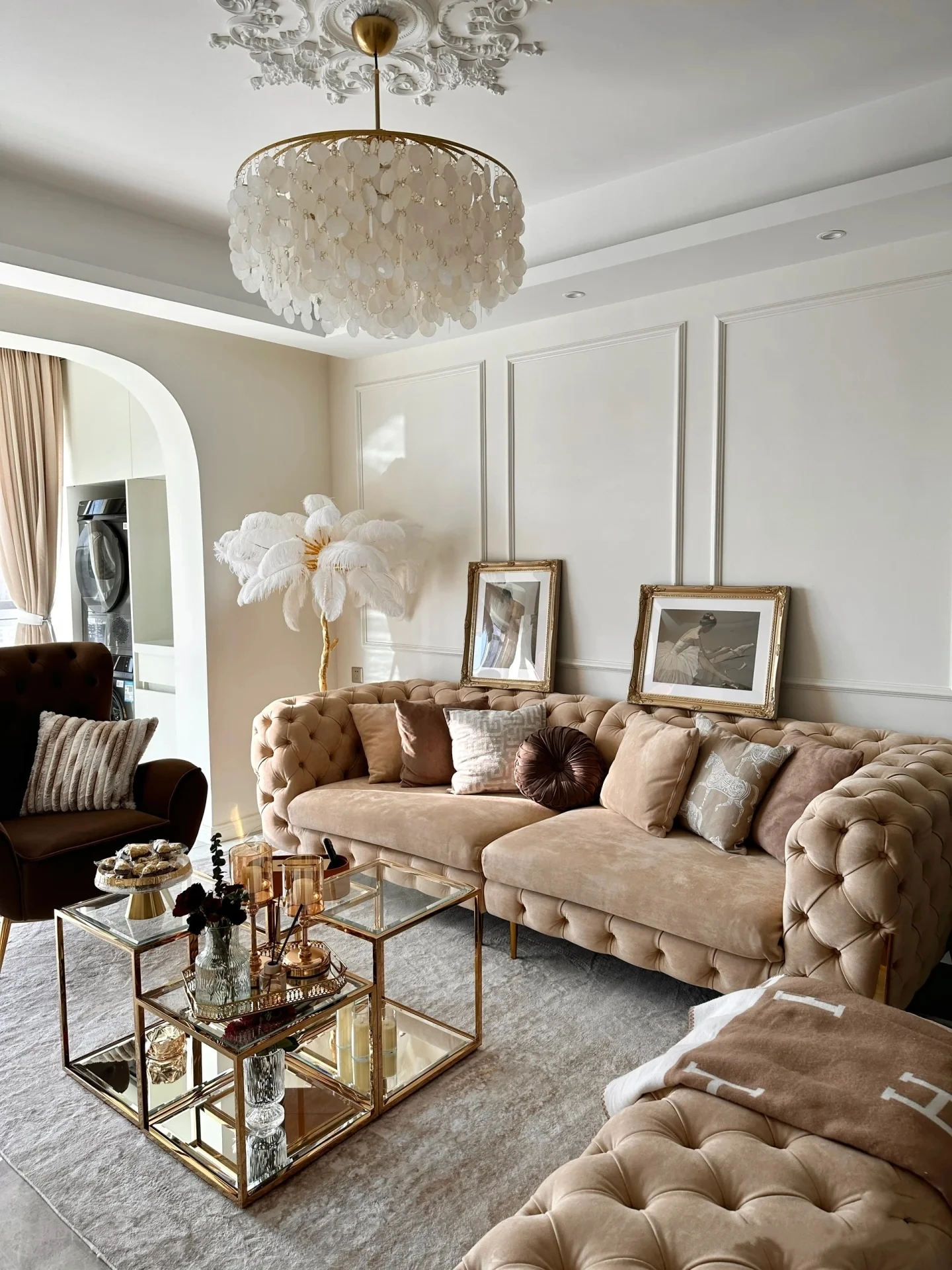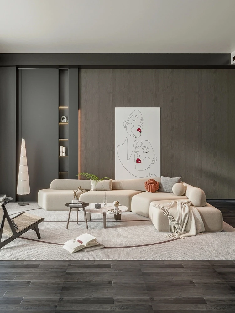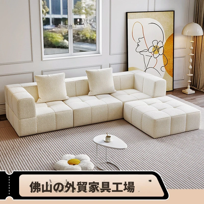 フランス風クリーム仕上げの角型インポートロックモジュラー布製イタリアンミニマルスタイルの広々とした別荘用ユニークソファ。快適な居住空間を演出し、あなたの民宿を特別な場所に変えます!