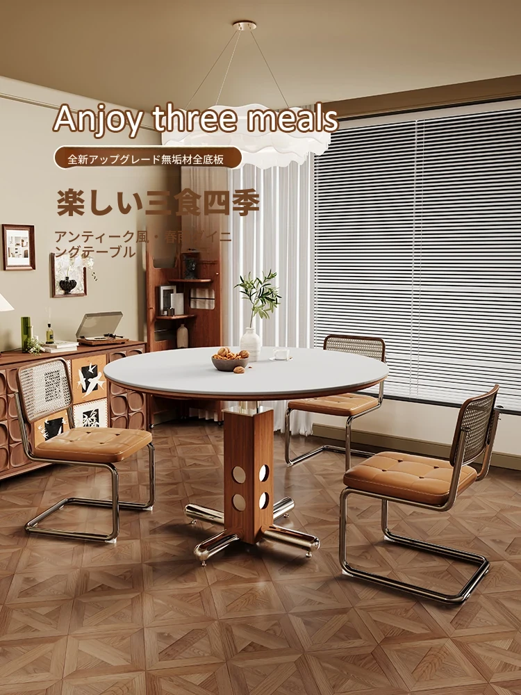実木製のロックボードダイニングテーブル&チェアセット|モダンでシンプル、軽奢なデザイン|小さなスペースにも最適な伸縮・折りたたみ可能な円形テーブル!家庭での食事を特別なひとときに演出します。