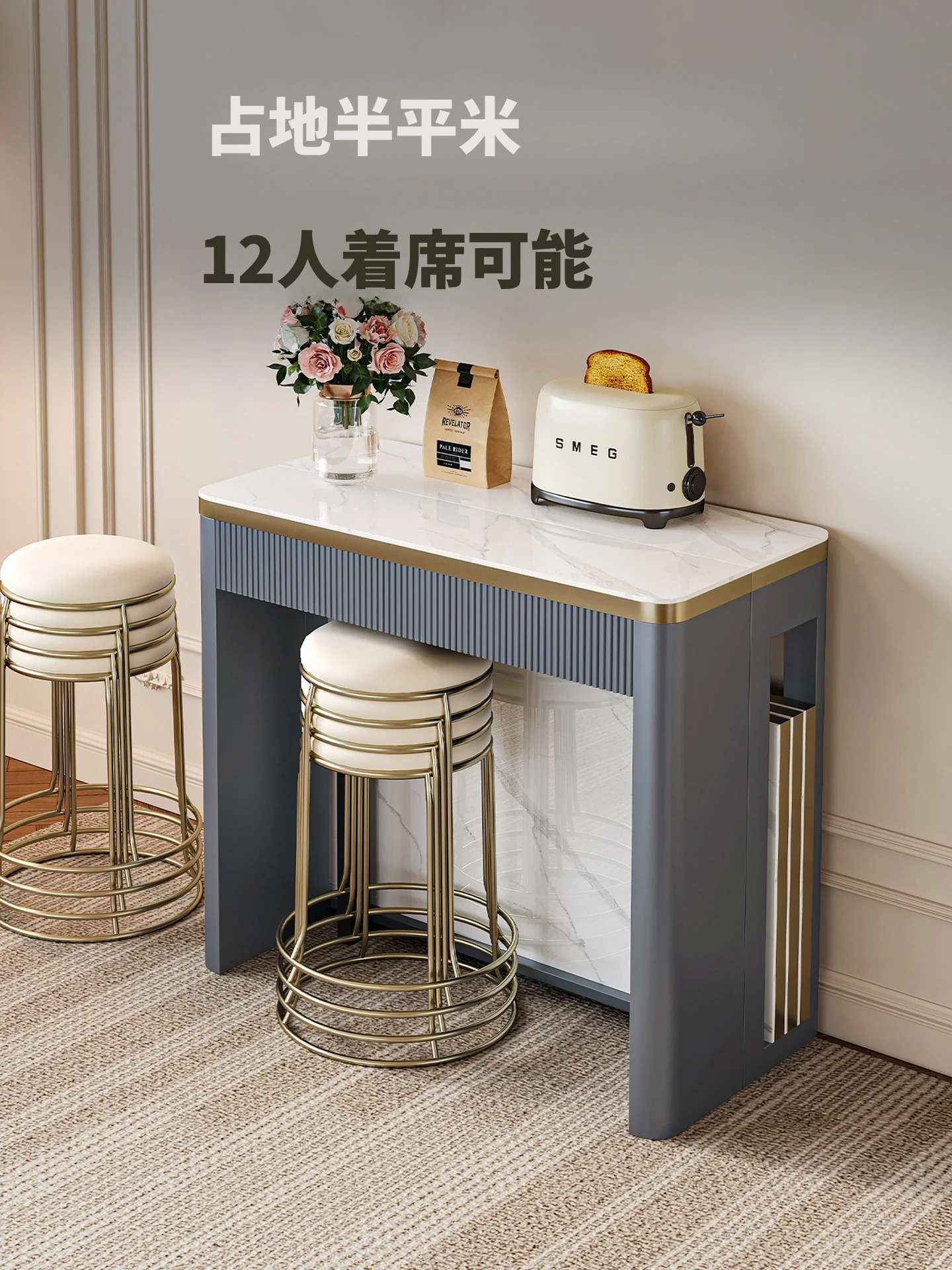 モダンでシンプルな伸縮式岩板ダイニングテーブル - 家庭用、リビングに最適!小型スペースにぴったりの昇降機能付き、移動も簡単な多機能折りたたみコーヒーテーブル。快適な食事空間を実現!