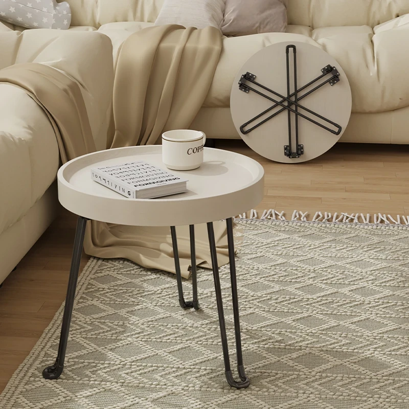 新作!シンプルでモダンなデザインの折りたたみ式小茶テーブル。ソファサイドや窓辺にぴったりな多機能丸テーブル。おしゃれで便利、どこでも簡単に移動可能!