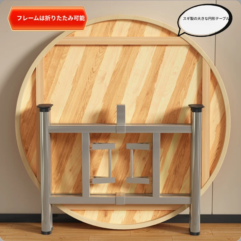 新中式スタイルの厚手無垢材使用折りたたみ大円卓、回転盤付きで家庭やホテルの宴会にも最適!大人数でもゆったり食事が楽しめる贅沢なデザイン。