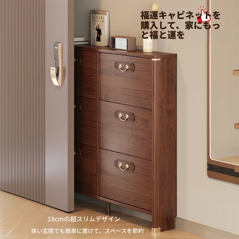 超スリムな無垢材シューズキャビネット - 室内用の小型収納棚、壁にぴったりフィット!玄関や入居スペースに最適なスタイリッシュなシューズラックで、限られたスペースでもおしゃれに収納!