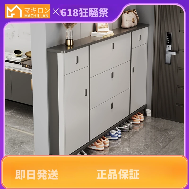 エレガントなイタリアンデザインの超スリム翻斗靴収納キャビネット - 家庭用玄関収納の必需品!省スペースでスタイリッシュな一体型シューラック、狭い玄関でも大活躍!