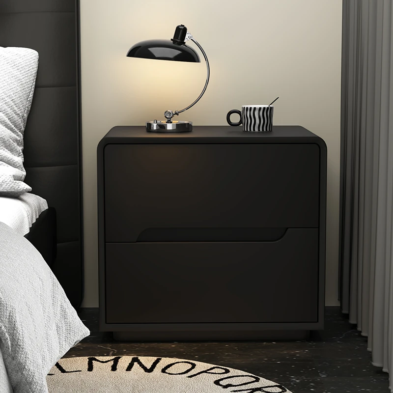 Elegant Black Solid Wood Nightstand in Wabi-Sabi Style - Minimalist Modern Bedside Storage Cabinet for Easy Organization in Your Bedroom