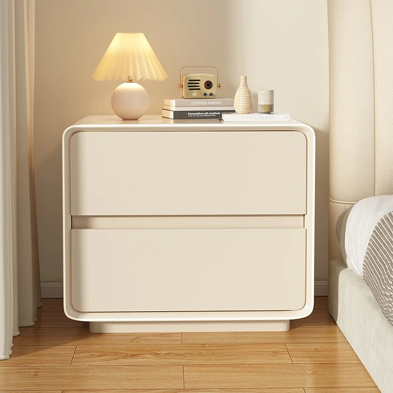 2025 New Arrival Solid Wood Cream-Style Nightstand – Minimalist Modern Bedside Cabinet for Home Bedroom, Compact Storage Solution