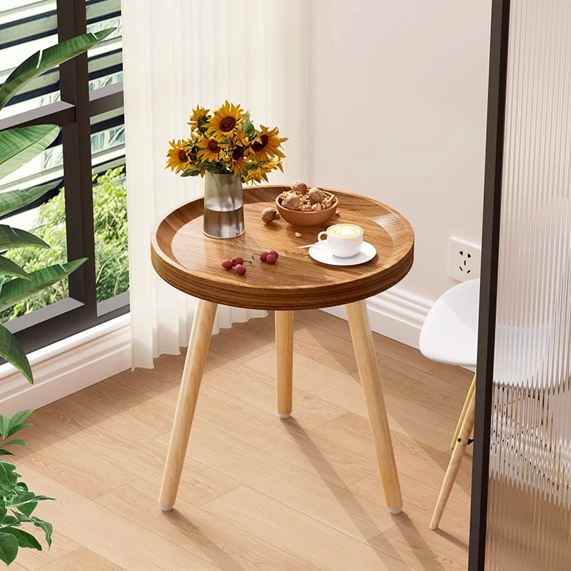 おしゃれな丸型サイドテーブル!小型住宅向けのリビングやバルコニーに最適なクリエイティブな茶卓。収納スペースも兼ね備えた、便利でスタイリッシュな角テーブルです。