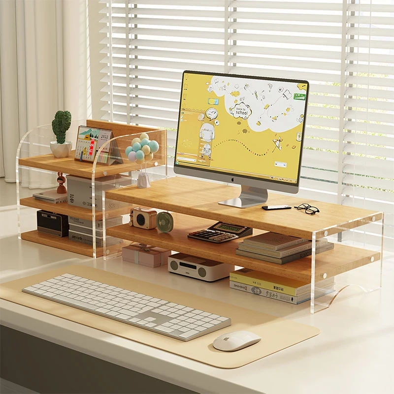 デスクトップパソコンモニター用スタンド - アクリル製の浮遊収納ラック!デスク周りをスッキリ整理できる多機能トレイで、快適な作業環境を実現。おしゃれで実用的な収納ソリューション!