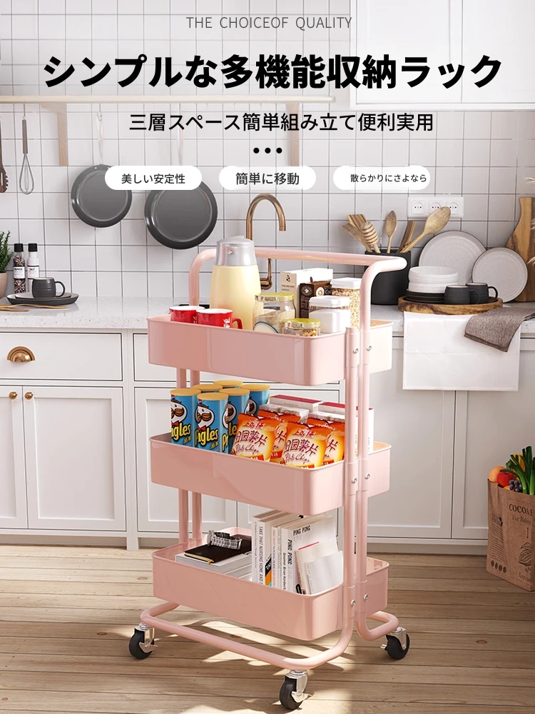 移動式キャスター付き多層収納ラック - 簡単に使えるおしゃれなブックシェルフ!スナックや本を整理整頓できる、便利な地面置きタイプ。お部屋をスッキリさせるアイテムです!
