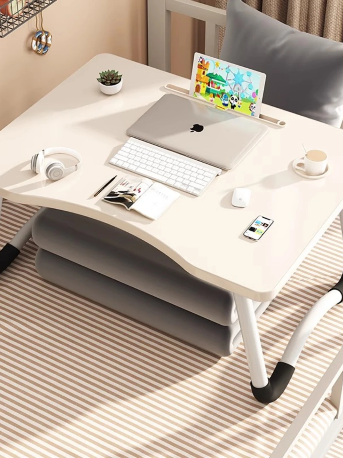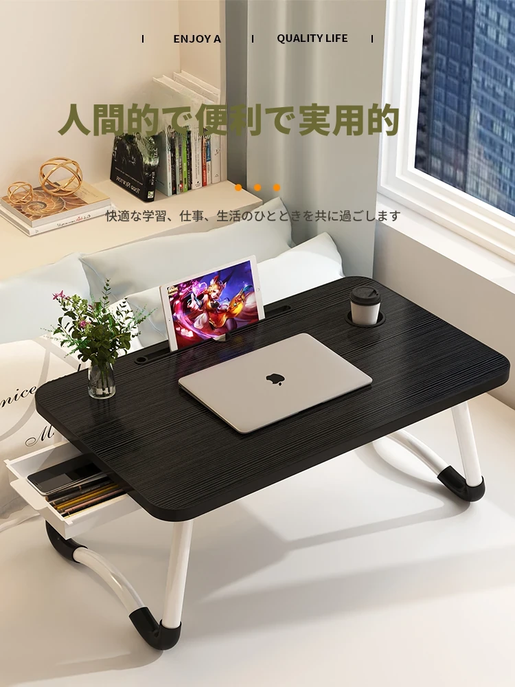折りたたみ式多機能学習デスク!学生寮や家庭に最適なノートパソコン用テーブル。省スペースで使いやすく、勉強や仕事も快適にサポートします。