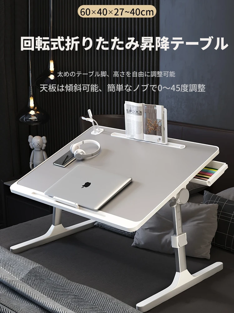ベッド上で使える折りたたみ式昇降デスク - 学生に最適な書き物テーブル、寮や寝室での使用にぴったりな快適な学習デスク!