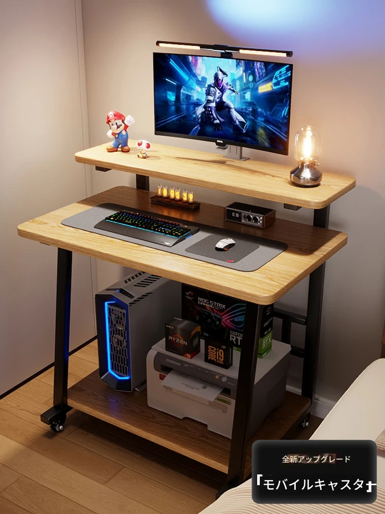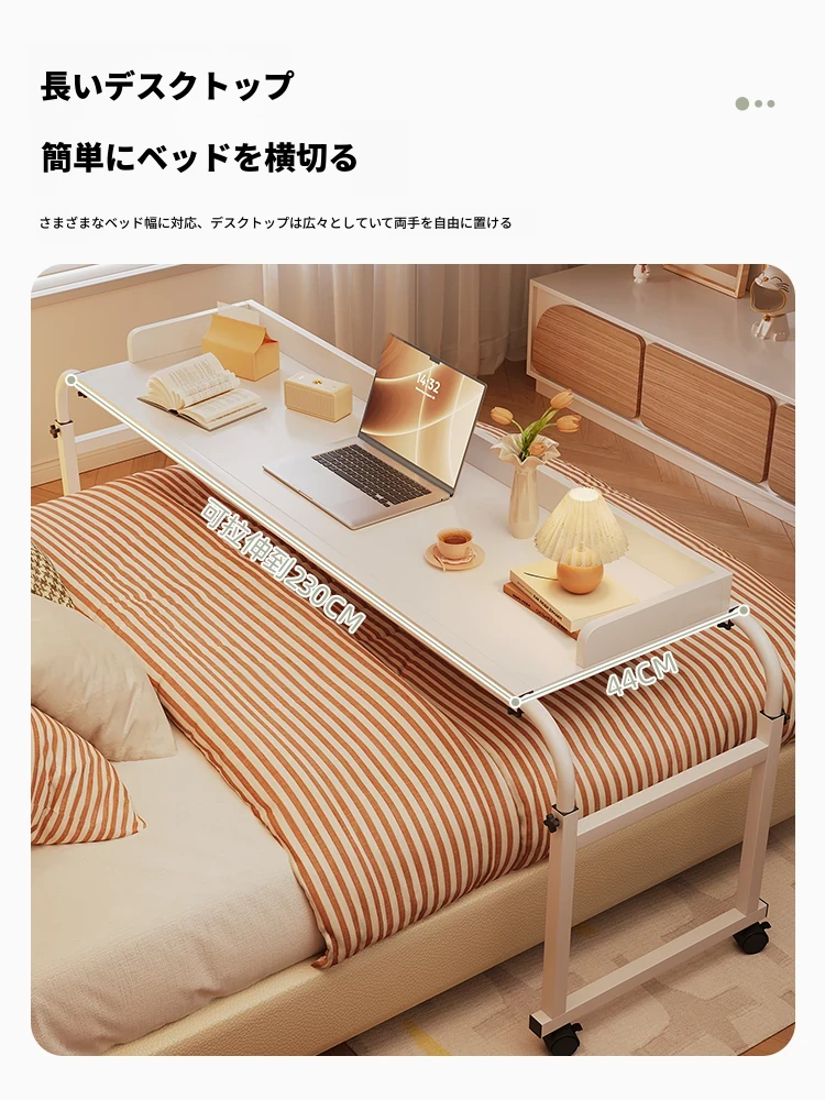 移動可能なベッドサイドテーブル|学習や在宅勤務に最適!壁に寄せられる昇降式パソコンデスク|快適なリラックス空間を提供する便利なアイテム!