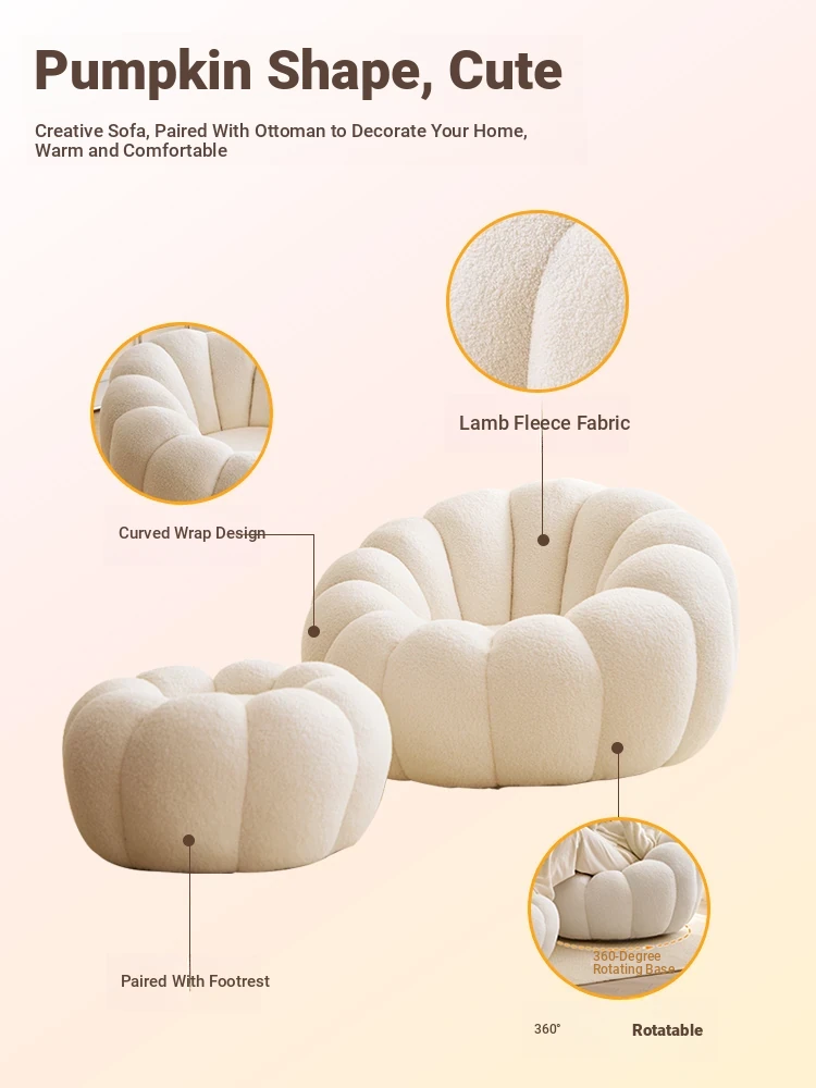 Comfortable Lazy Pumpkin Sofa Chair - Convertible for Sleeping and Reclining, Rotating Seat, Perfect for Balconies and Bedrooms, Ideal Single Sofa for Relaxation at Home