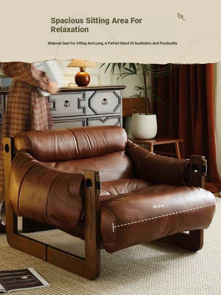 Vintage Solid Wood Single Sofa Chair - Chic and Cozy Lounge Chair for Living Room, Home, and Balcony - Embrace Mid-Century Style with Elegant Comfort
