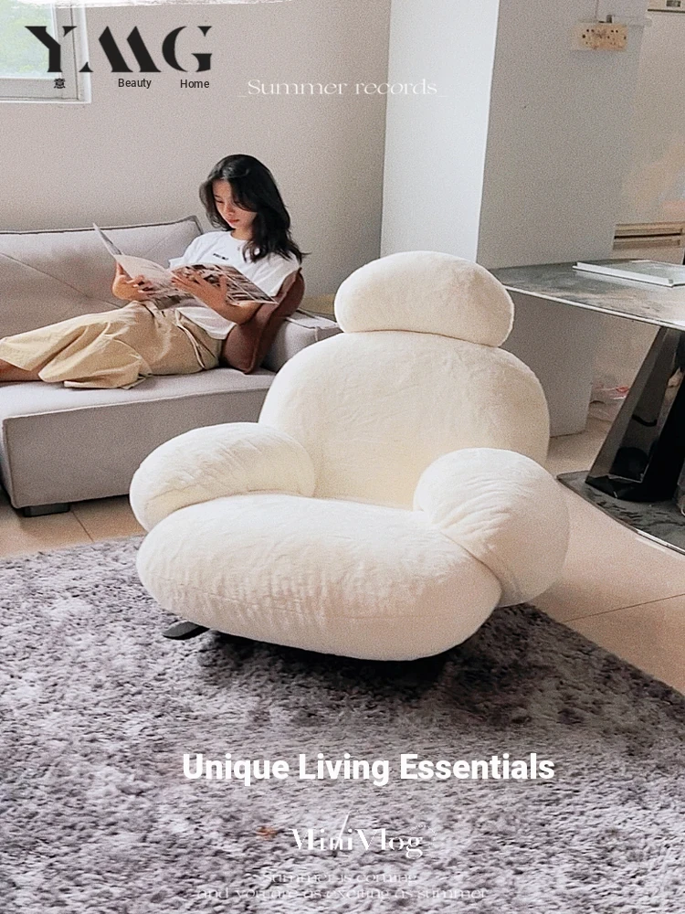 Trendy Nordic Style Single Sofa - Cozy Lamb Fleece Creative Smile Chair for Balcony and Living Room, Versatile Crab Chair, Perfect Lazy Chair for Relaxation