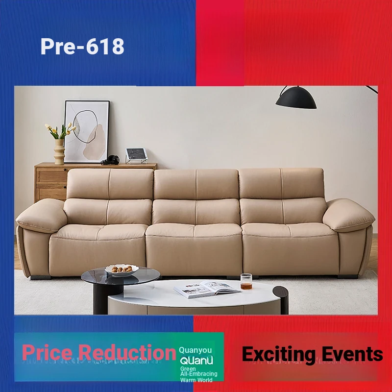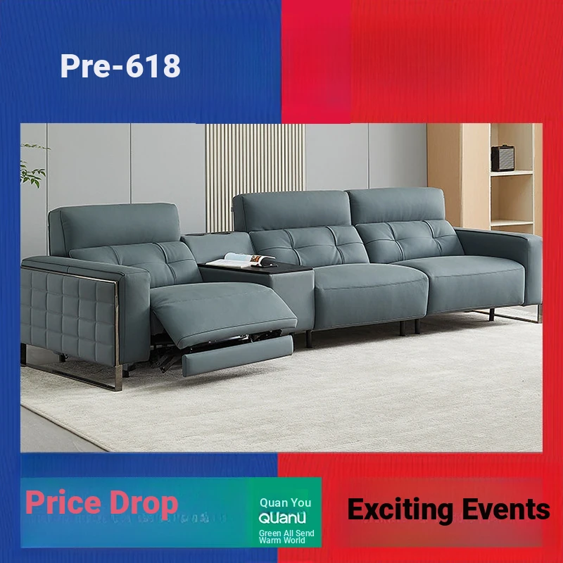 2025 New Italian Luxury Electric Functional Genuine Leather Sofa – Adjustable and Expandable Dual-Use Sofa Bed for Modern Living Rooms