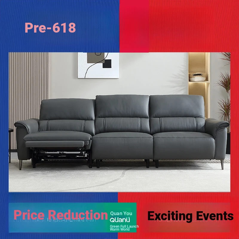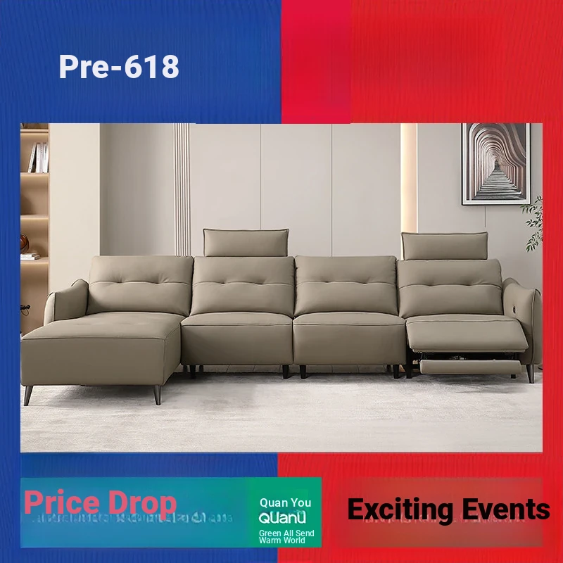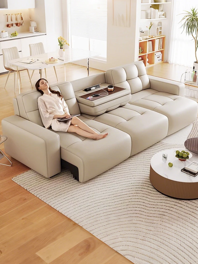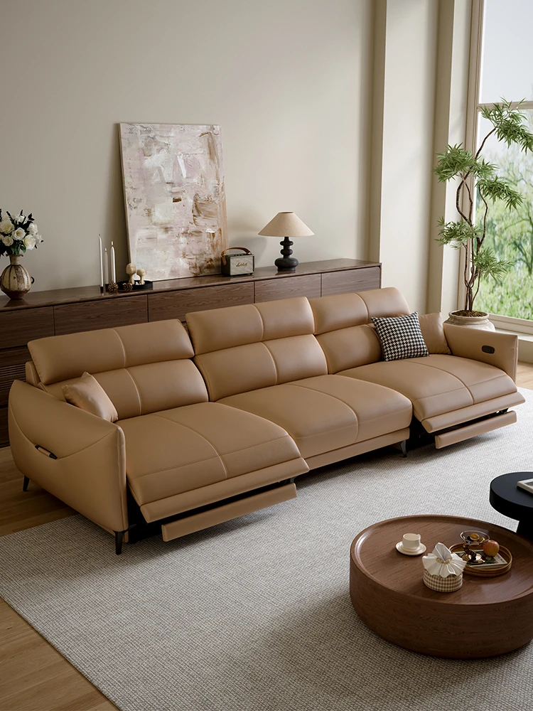 Stylish Italian Minimalist Electric Sofa with Top-Grain Leather - Adjustable for Small Spaces, Perfect for Your Living Room!