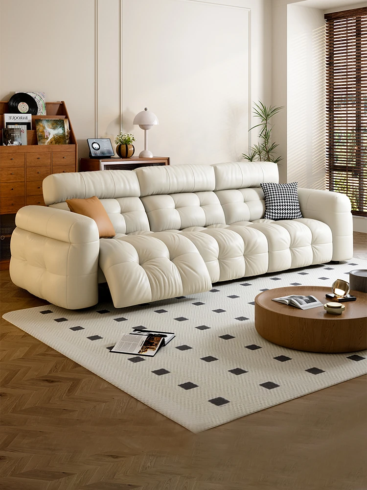 2025 New Adjustable Electric Sofa Bed - Genuine Leather Cream Style, Perfect for Relaxing or Sleeping in Your Living Room, Spacious Three-Seater Design