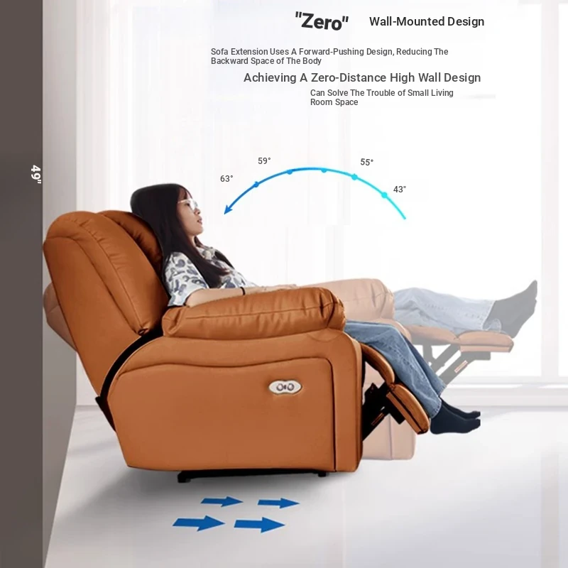 Italian Style Zero Wall Electric Recliner Genuine Leather Sofa - Versatile Space-Saving Three-Seater Adjustable Sofa for Ultimate Comfort