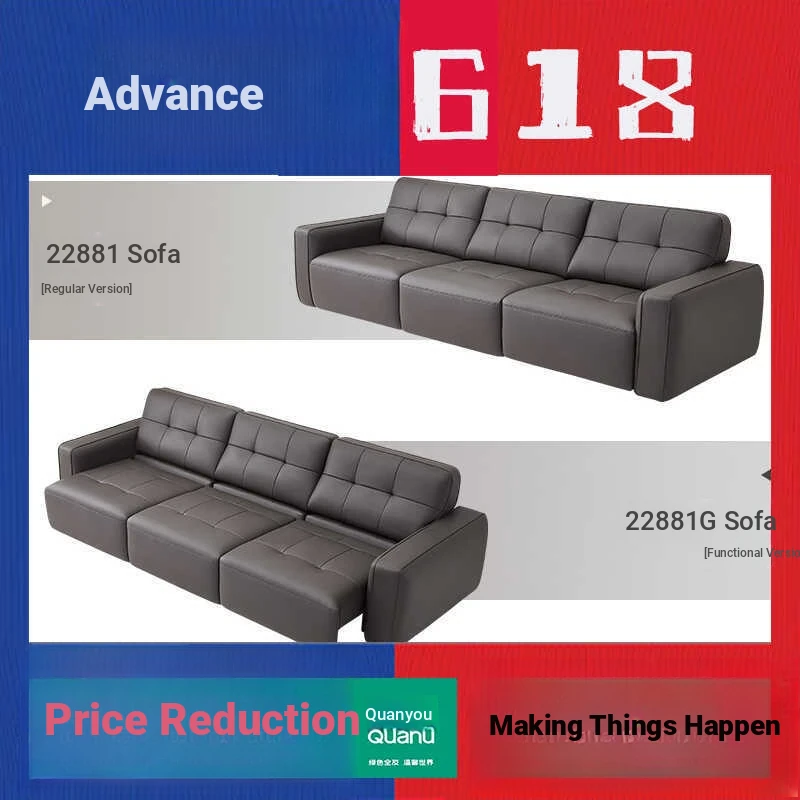 Quanyou Home Store 22881G Imported Top-Grain Yellow Cowhide Sofa - Stylish & Minimalist Electric Functionality