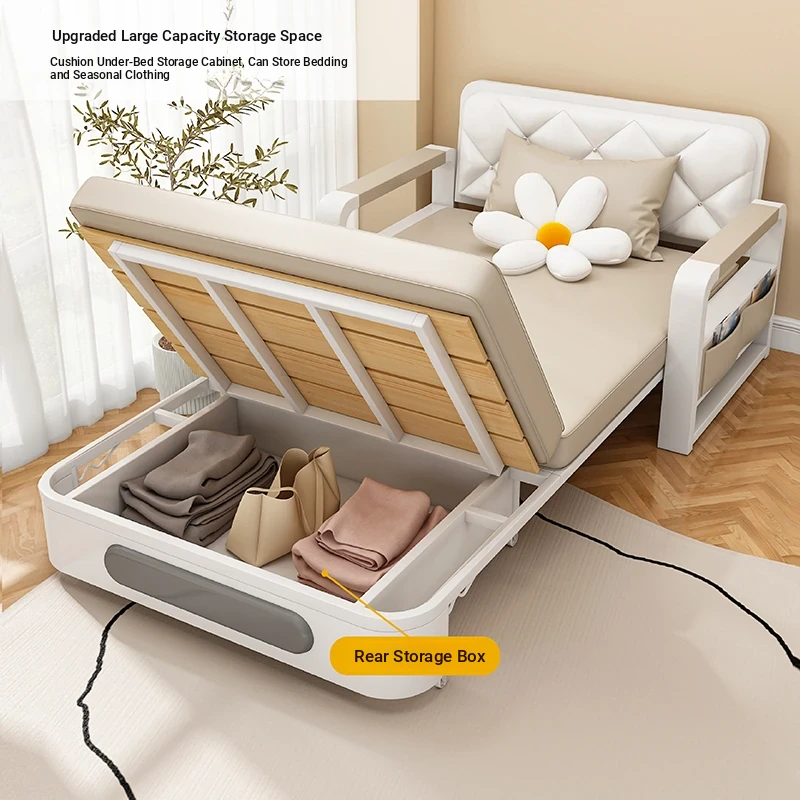 2025 New Electric Sofa Bed for Small Living Rooms - Versatile Foldable Design, Dual Functionality as a Bed and Genuine Leather Sofa