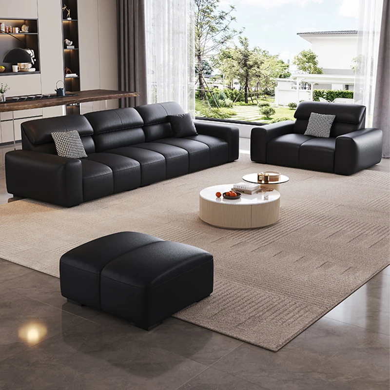 Modern Minimalist Italian Leather Sofa for Small Living Rooms - 2025 New Design with Black Piano Key Style