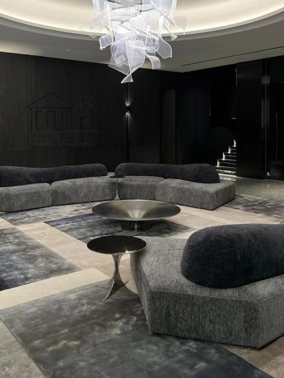 Modern Italian Minimalist Black and Color-Block Rock Sofa - Unique Modular Design for Spacious Living Rooms and Large Apartments, Perfect for Stylish Gatherings!