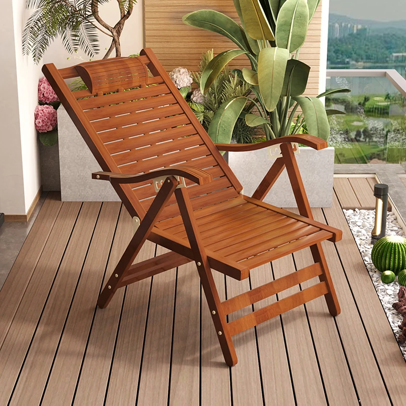 Portable Bamboo Folding Recliner Chair - Sturdy and Reinforced for Office Naps, Relaxation, and Home Use - Enjoy Ultimate Comfort with this Easy-to-Carry Rocking Chair!
