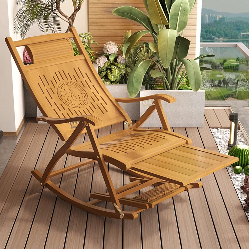 Adult Bamboo Rocking Chair - Relaxing Recliner for Home Use, Perfect for Afternoon Naps on the Balcony, Ideal for Living Room and Seniors, Comfortable and Versatile Lounge Chair