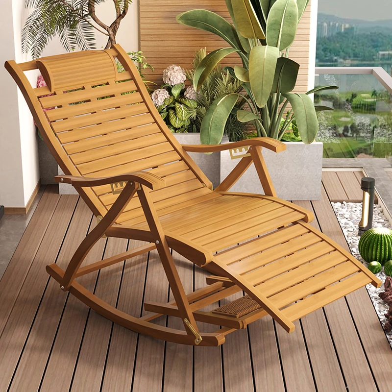 Folding Rocking Chair for Adults - Perfect for Summer Naps! Comfortable Lounge Chair for Balcony Relaxation, Ideal for Seniors - Bamboo Design for Home Use