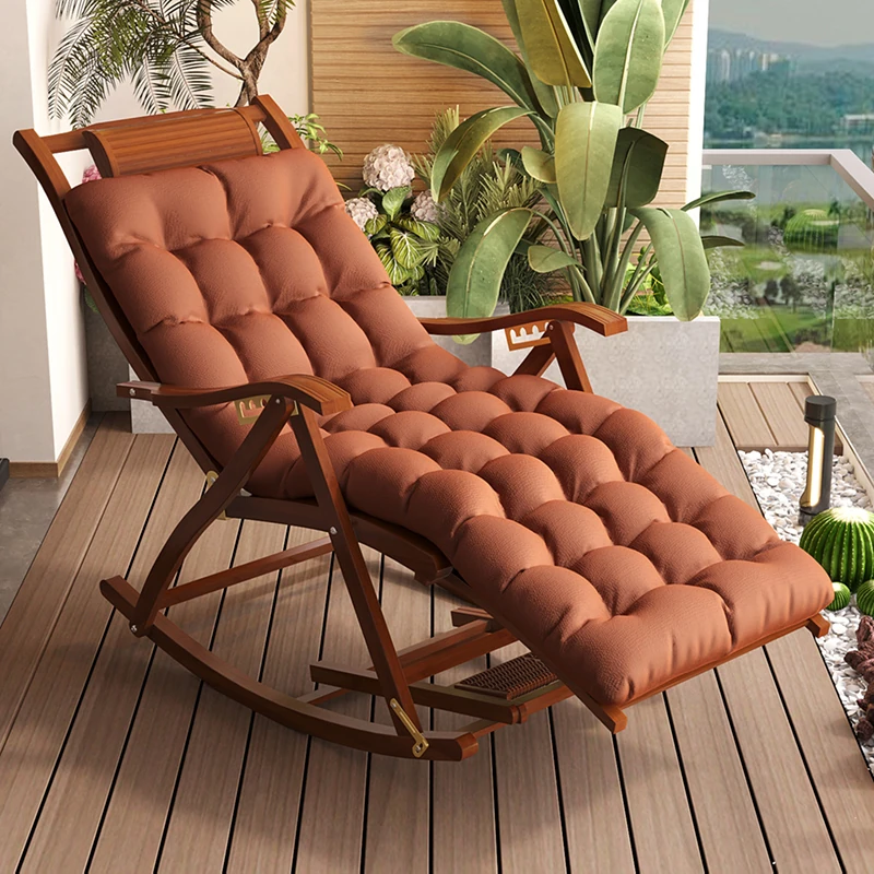 Portable Folding Bamboo Lounge Chair for Office and Home - Comfortable Rocking Chair for Adults and Seniors, Ideal for Balconies, Extra Thick Design for Ultimate Relaxation