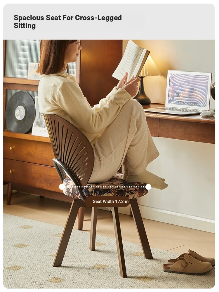 Ergonomic Home Office Chair - Comfortable Rotating Study Chair for Long Hours, Perfect for Bedroom and Living Room, Solid Wood Dining Stool