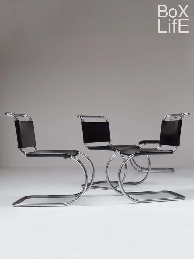 Box Life Bauhaus Stainless Steel Dining Chair - Mr. Chair Design with Vintage Saddle Leather and Cantilever Style, Perfect for Modern Interiors