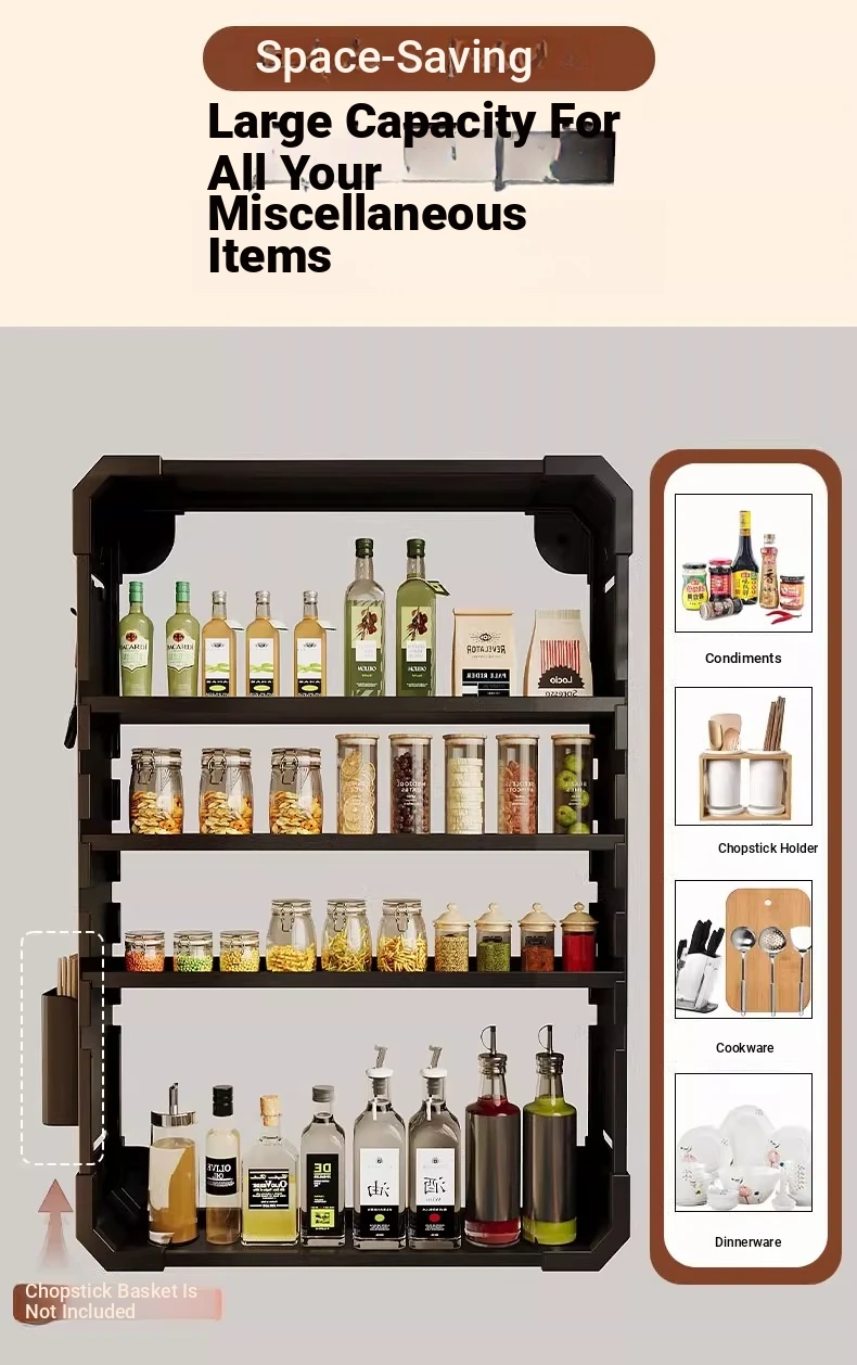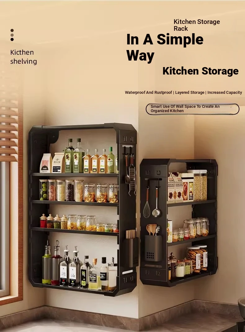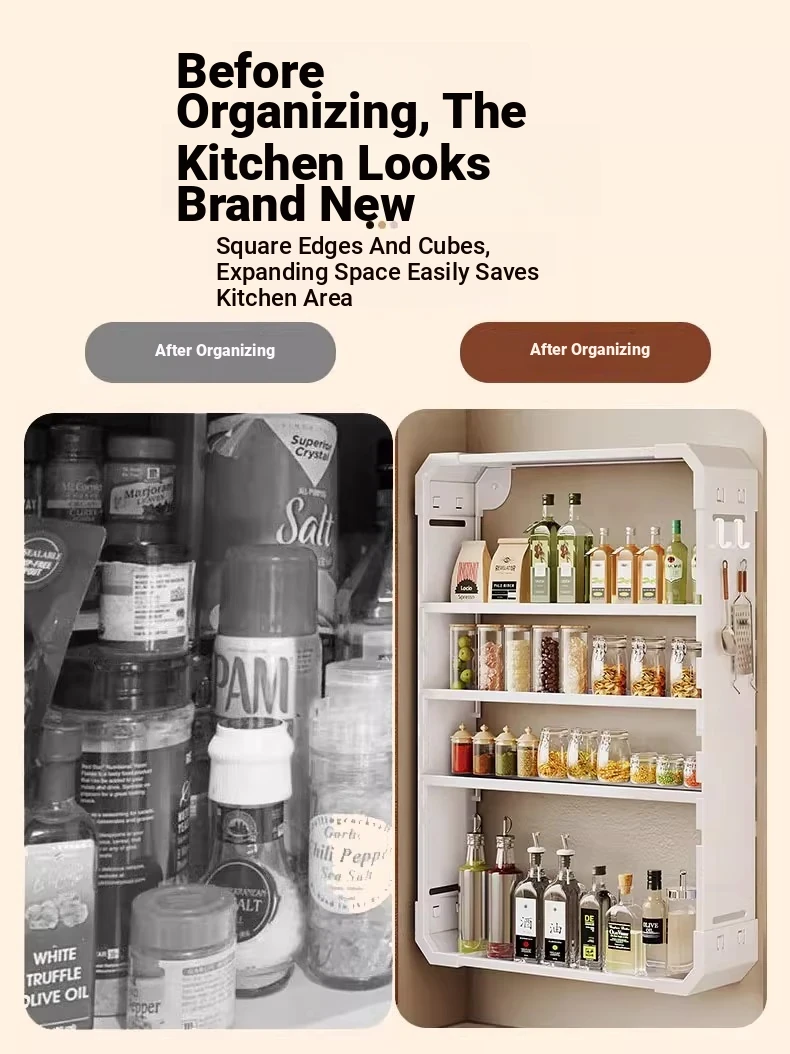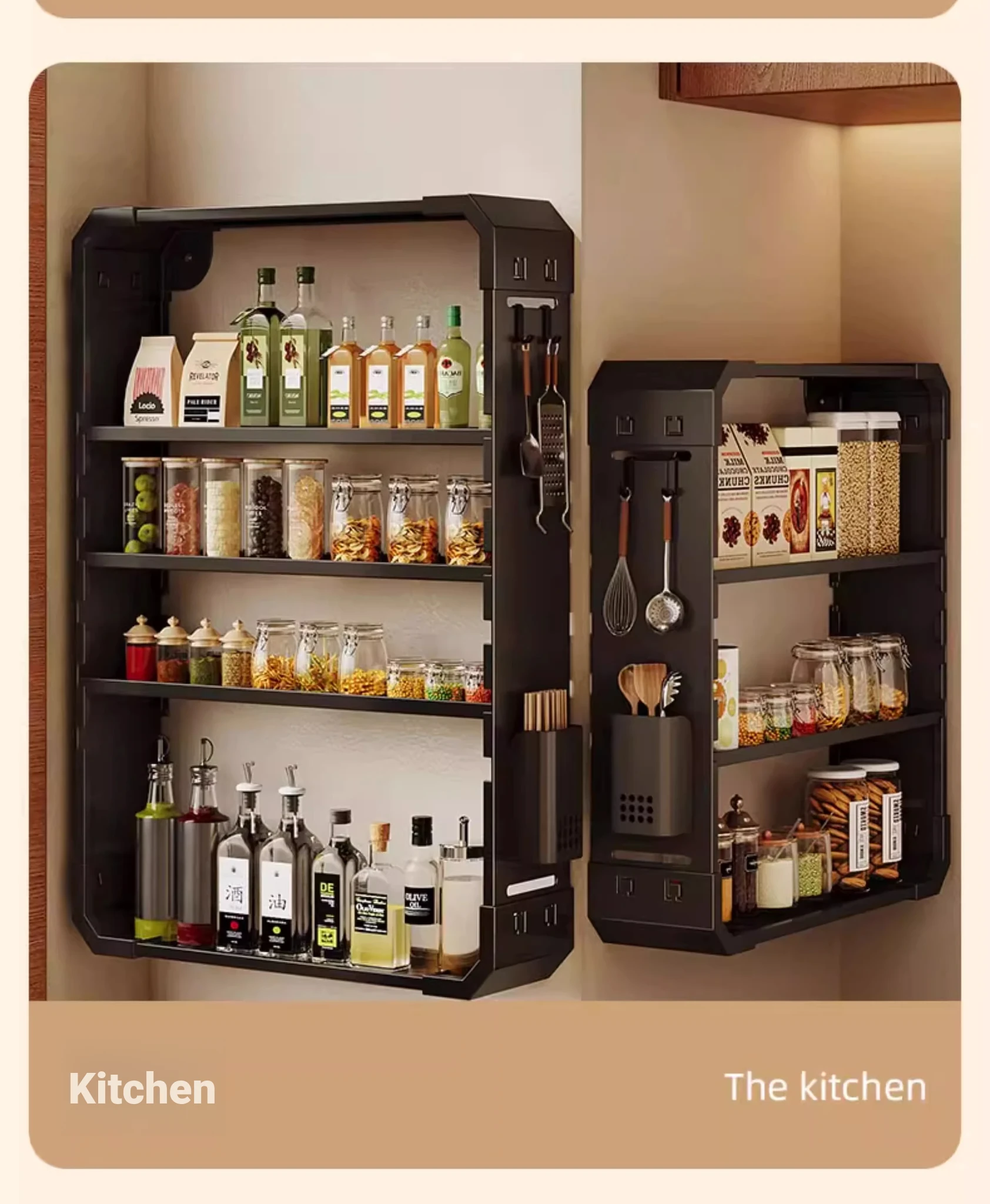2025 Hot-Selling Adjustable Kitchen Storage Rack - Multi-Functional Wall-Mounted Spice Organizer, No Drilling Required! Perfect for Maximizing Space and Keeping Your Kitchen Tidy!