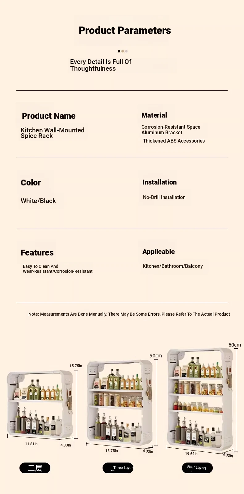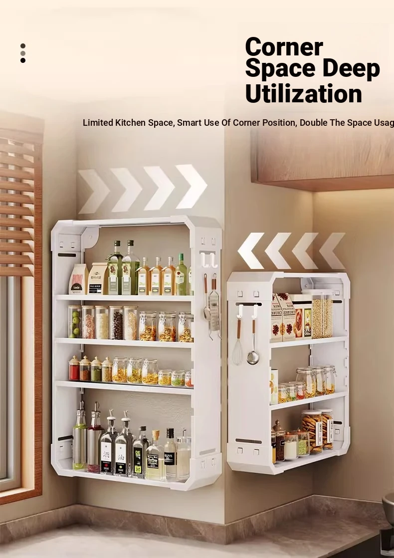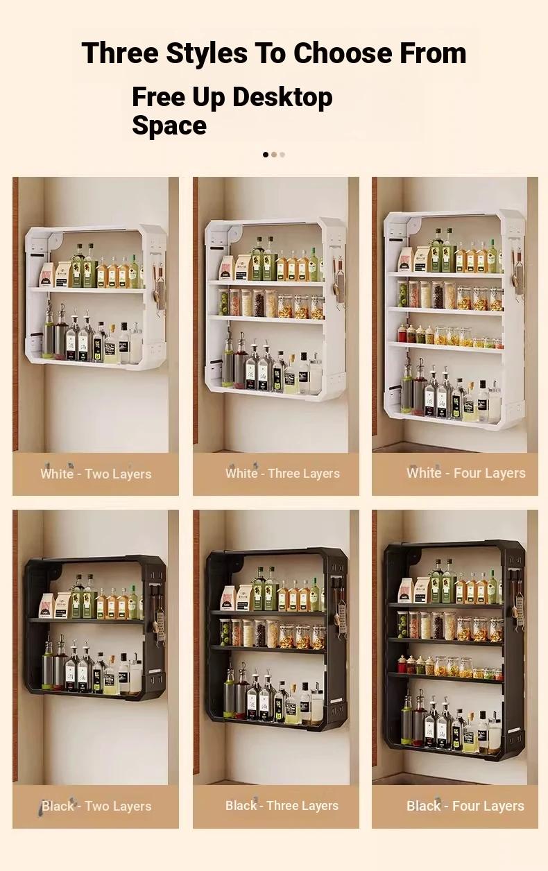 2025 Hot-Selling Adjustable Kitchen Storage Rack - Multi-Functional Wall-Mounted Spice Organizer, No Drilling Required! Perfect for Maximizing Space and Keeping Your Kitchen Tidy!