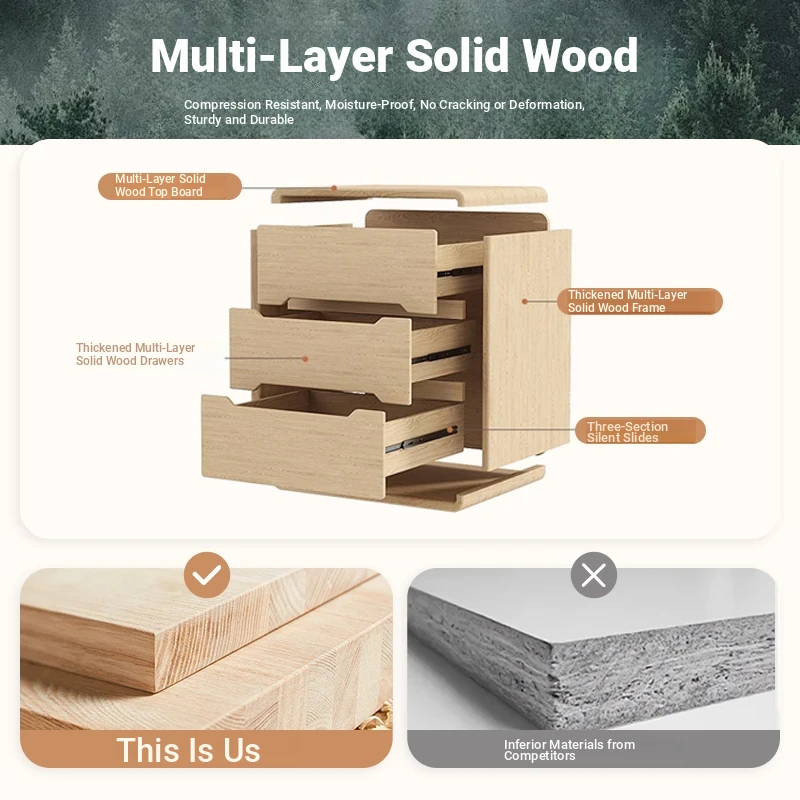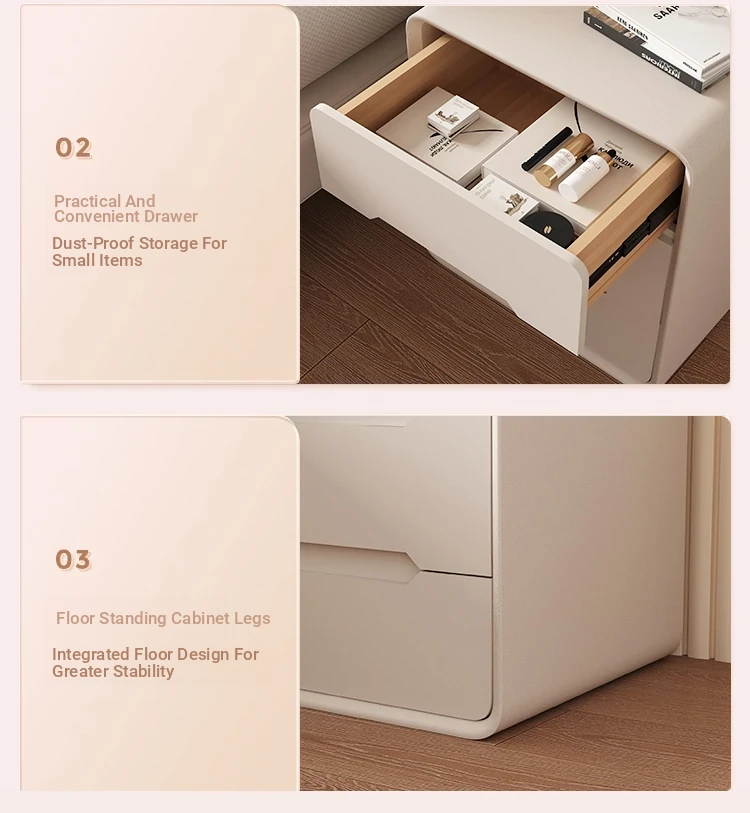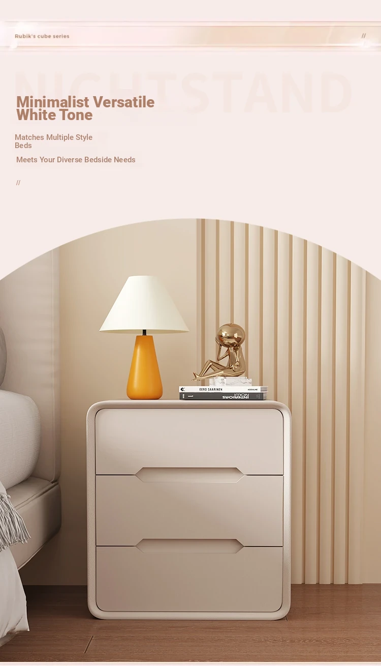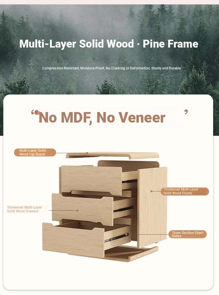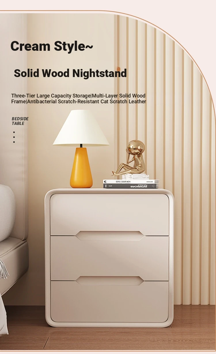 2025 New Arrival Solid Wood Cream-Style Nightstand – Minimalist Modern Bedside Cabinet for Home Bedroom, Compact Storage Solution