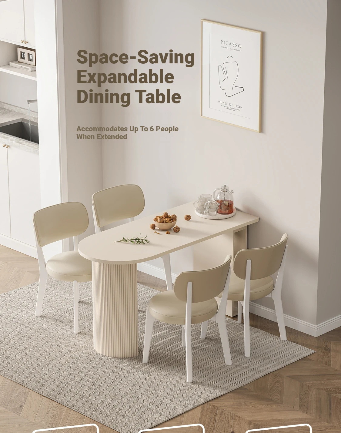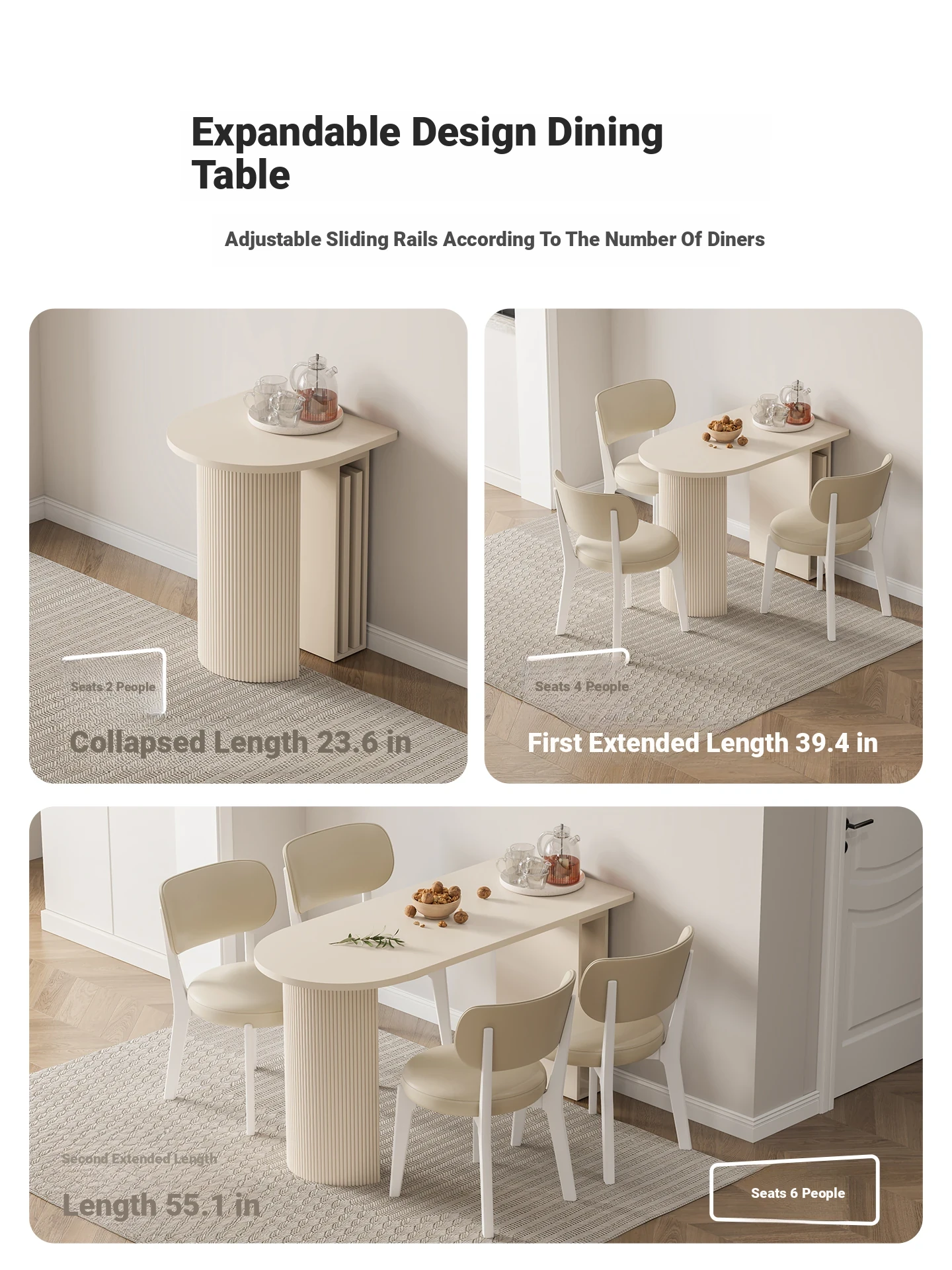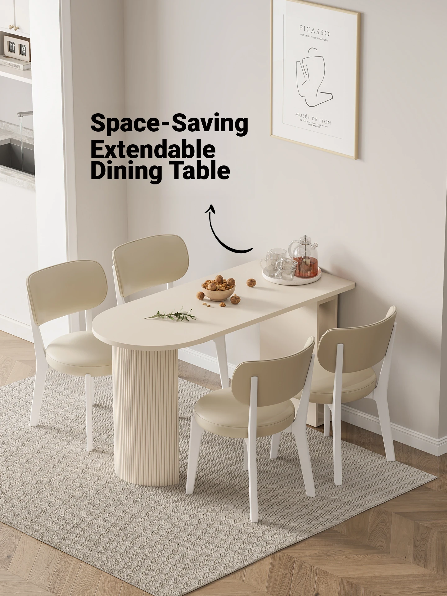 2025 New Compact Folding Dining Table Set - Space-Saving Oval & Semi-Circular Cream-Style Design for Small Homes, with Expandable Features and Stylish Chairs